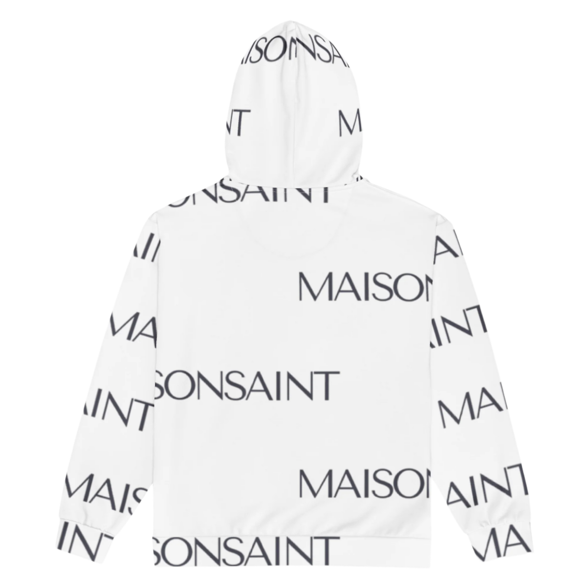 Maison Repeat Unisex full-print zip hoodie — embroidered legacy. A visual echo of the house name across form. For when subtlety isn’t the brief.