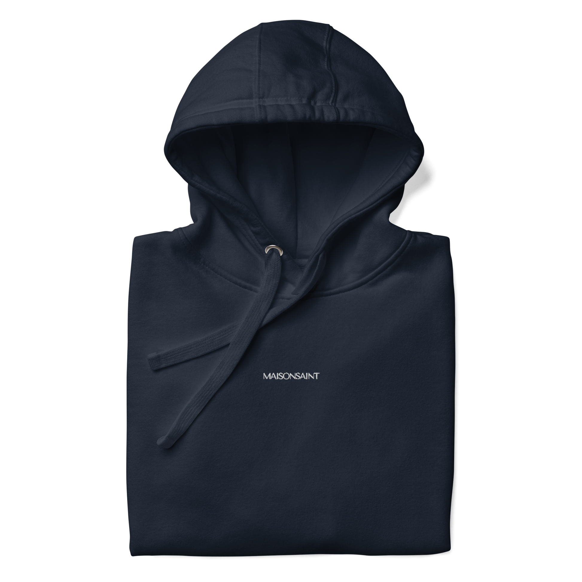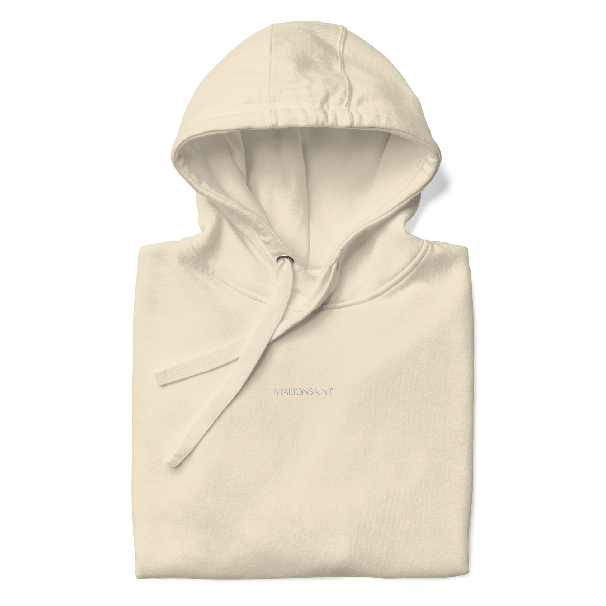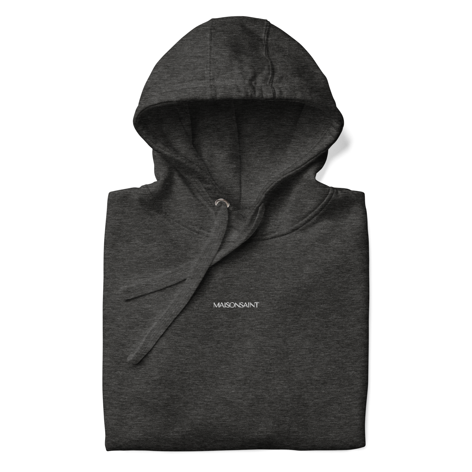 A Unisex Maison Standard — weight in form, light in presence. Embroidered detail, front and sleeves. This piece expands the Saint silhouette — made to stay quiet, worn to speak.